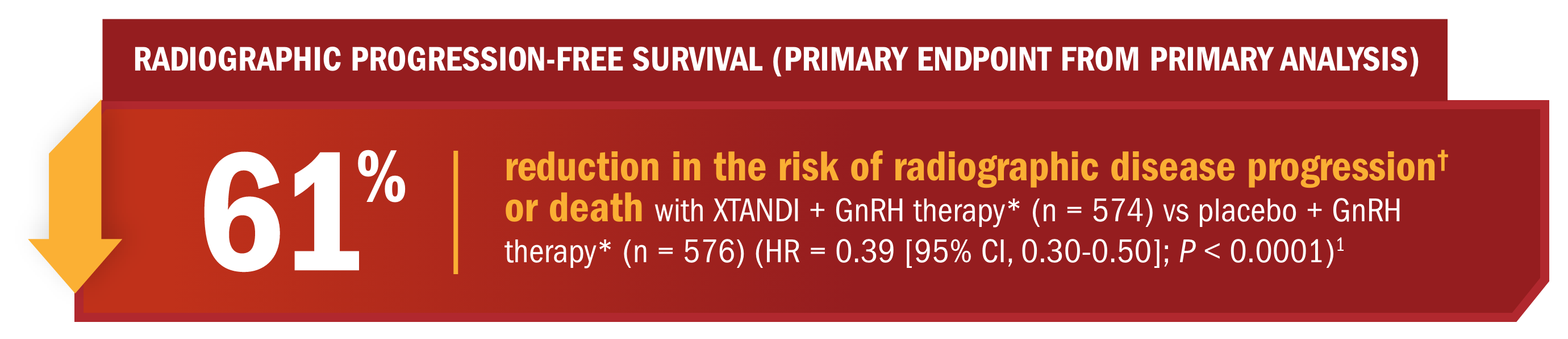 In the ARCHES trial, XTANDI + GnRH therapy* demonstrated significantly improved efficacy vs placebo + GnRH therapy* in mCSPC.1
